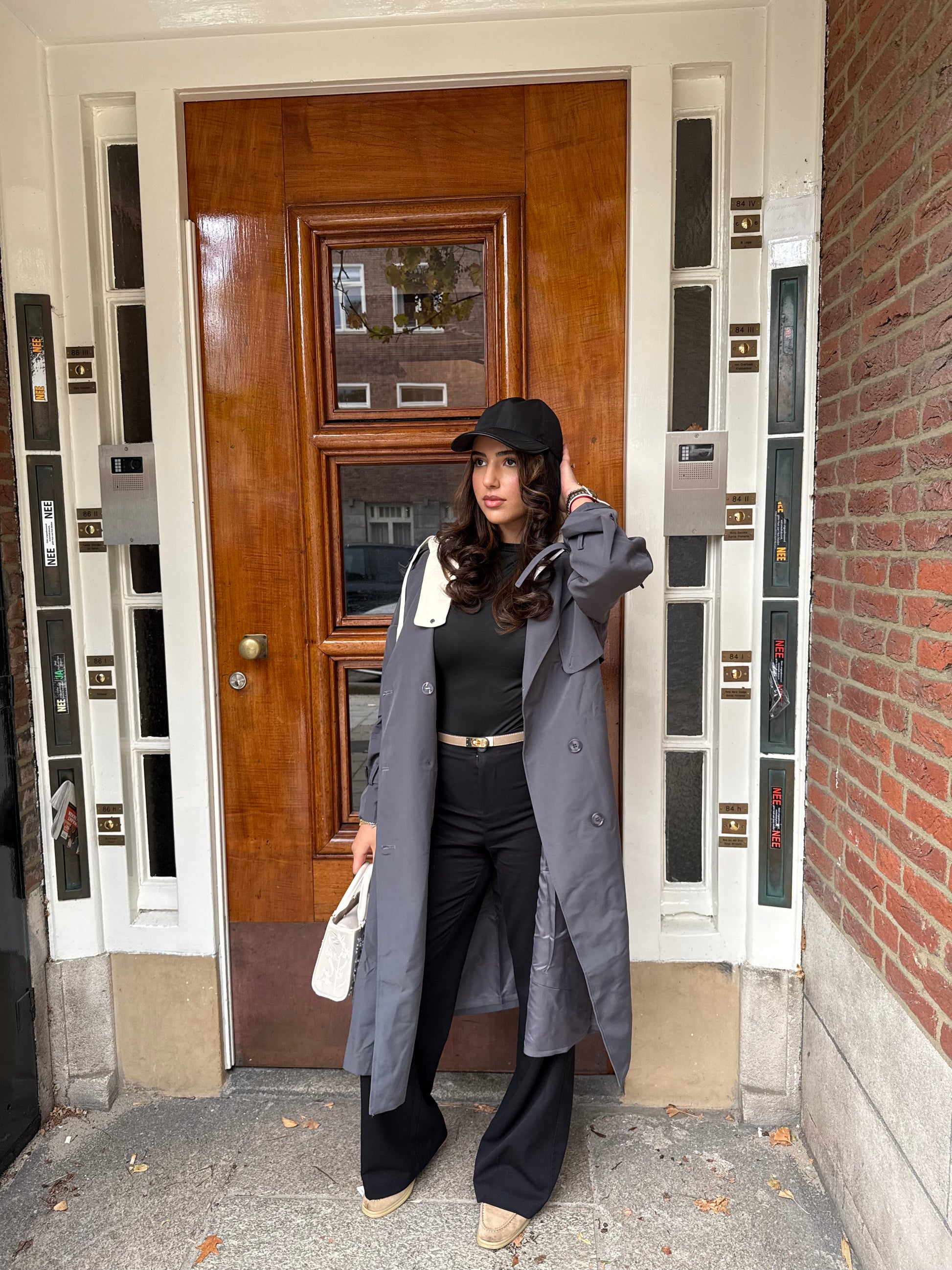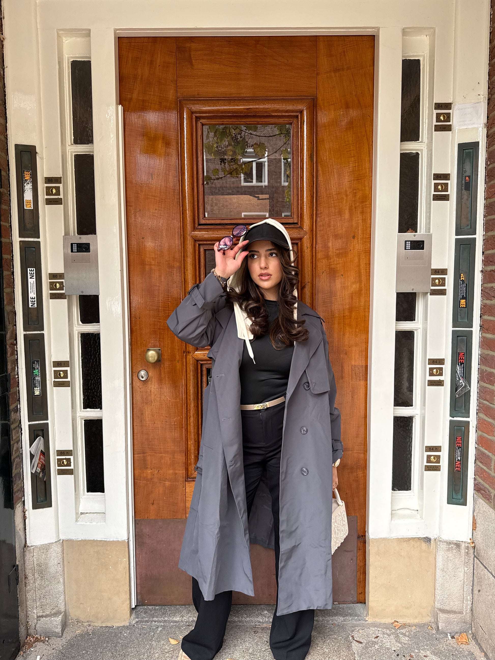Deze donkergrijze trenchcoat tilt elke look naar een hoger niveau. De perfecte mix van elegantie en edge – met een flatterende pasvorm en klassieke details die nooit uit de mode raken. Voor dagen waarop je stijlvol én zelfverzekerd voor de dag wilt komen.
